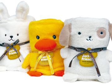 Jack & Friends Cuddly animal blankets. This fluffy, comfy-cozy plush blanket can roll into a cuddly friend. It is soft to the touch on both sides and are sure to keep you children warm. This 2-in-1 Blanket and a plush toy is a great item for children of all ages. https://faire.com/direct/jackandfriends